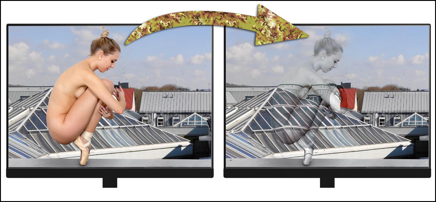 Digitale Tarnanzüge: Den nackten Frauenkörper mit einem Hintergrund verschmelzen zu lassen ... über diese Art künstlerischen Schaffens...