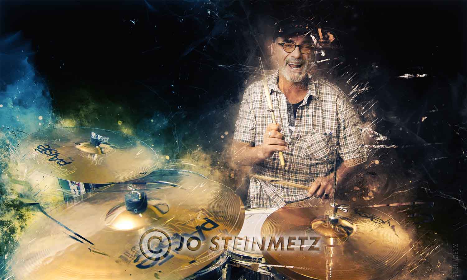 Spontanbild mit Thomas Brunner an einem Schlagzeug