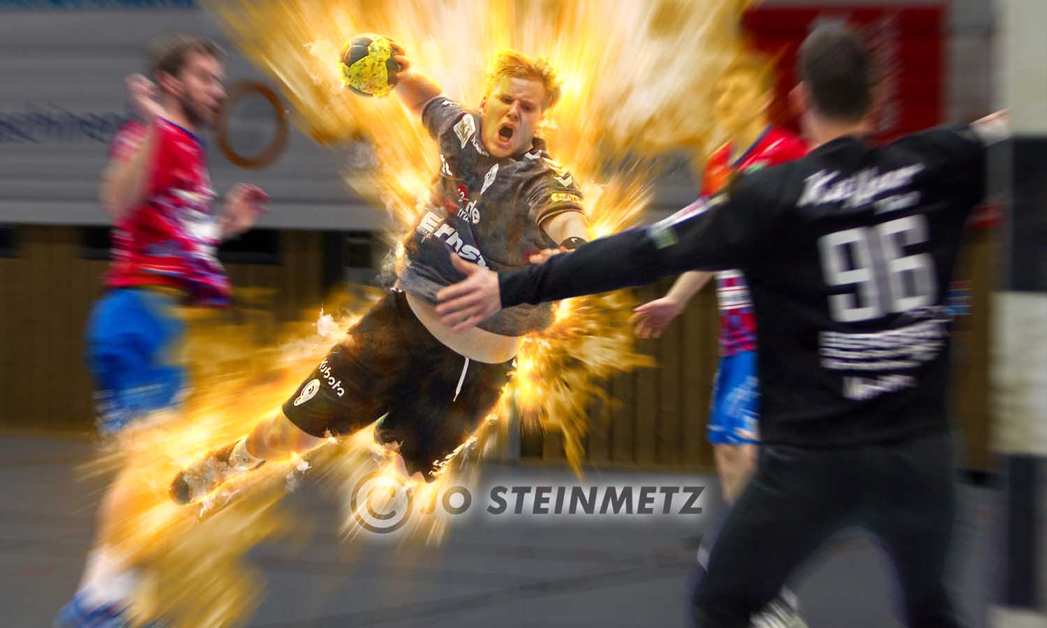 Handballer Patrick Bach (SV 64 Zweibrücken) in einem Spiel gegen den SV Heilbronn (gleiches Ausgangsfoto wie bei "Patrick Bach - Hypersonic")