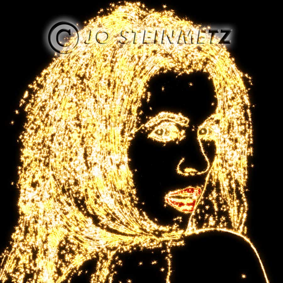 Die Umrisse des Models Maria wurden digital nachgezeichnet und mit einer "Wunderkerzen-Leuchtspur" gefüllt