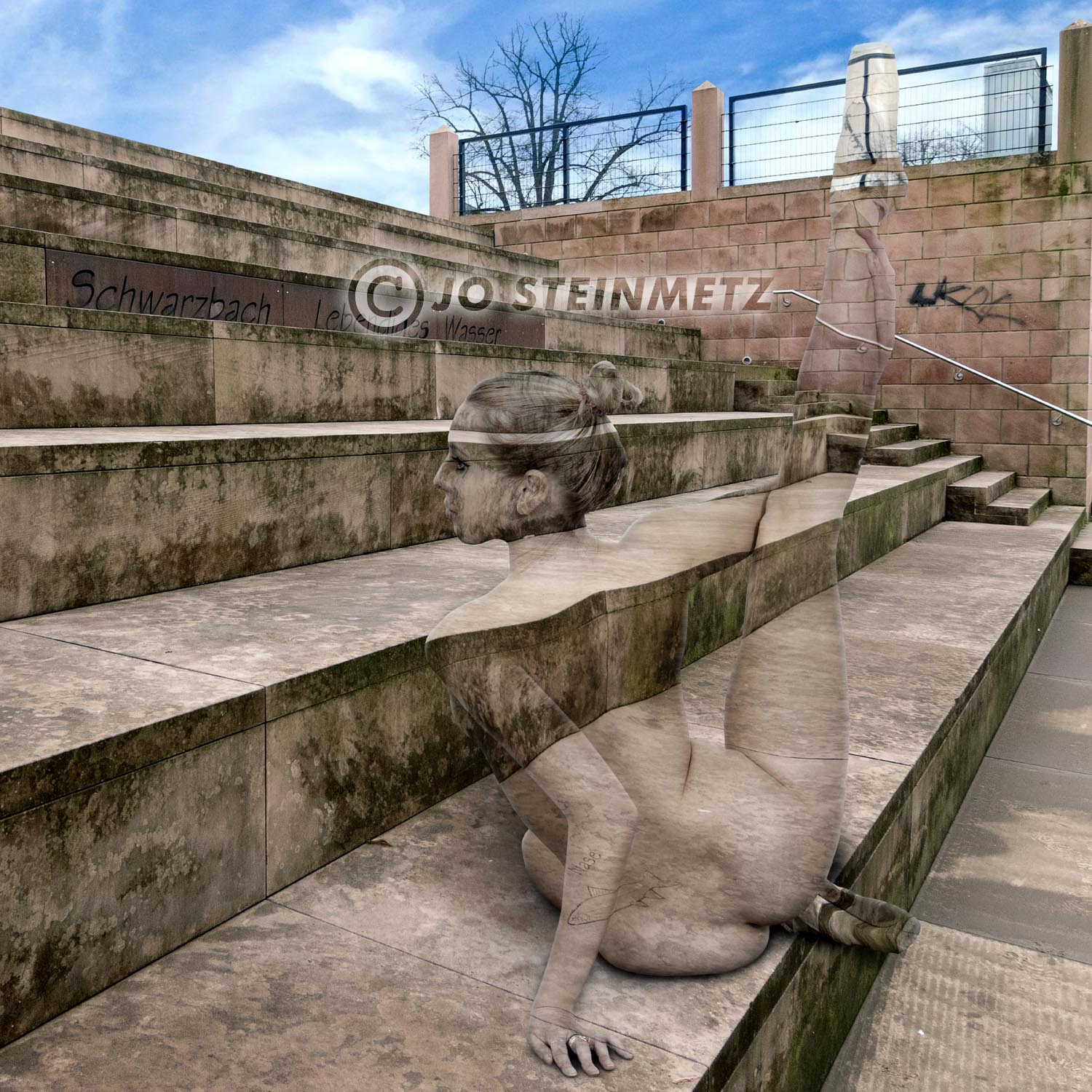 Hier verweilt Ballerina Freya auf einer der acht Stufen der Schwarzbachtreppe am Herzogplatz Zweibrücken, die im Mitte 2016 fertiggestellt wurde. Bei schönem Wetter lädt diese Stätte ein zum Verweilen, Sonnenbaden oder einfach nur zum Schwätzchenhalten.