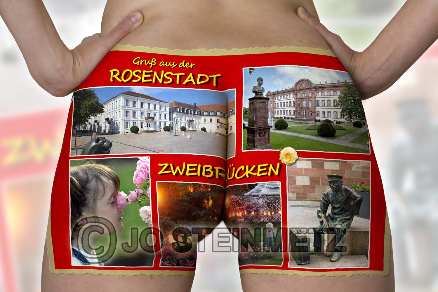 Hier ist sie: die erste inoffizielle Zweibrücker Arschkarte! Die verwendete Ansichtskarte wurde von mir selbst entworfen mit Bildern aus meinem Archiv.