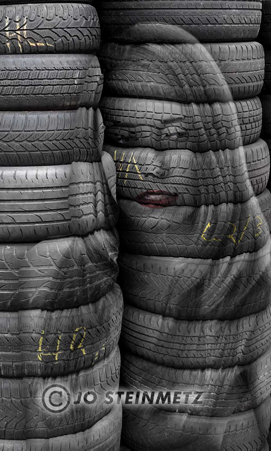 Beim Vorbeifahren entdeckte ich auf dem Betriebsgelände der Zweibrücker Firma Rauber Autoteile GmbH diesen Stapel abgefahrener Reifen. Spontan entstand die Idee, daraus zwei "Profilbilder" zu gestalten.