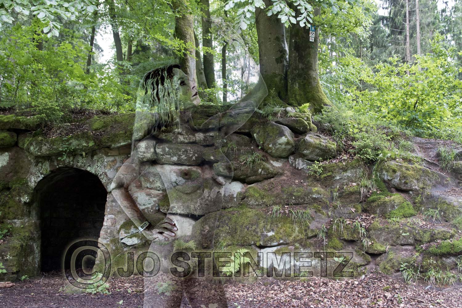 In unmittelbarer Nähe des Schwanenweihers zwischen Homburg und Käshofen befindet sich dieser höhlenartige Eingang mit Rundbogen, vor dem Silke posiert.